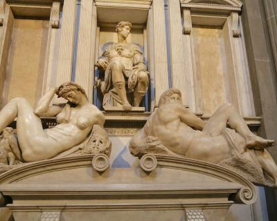 Экскурсия начнется с посещения Капеллы Принцев, где вы познакомитесь с непревзойденным образцом реализации каменной мозаики. Осматривая стены величественной часовни, украшенной панелями из редких и полудрагоценных камней, привезенных со всего мира, вы узнаете об амбициозных планах династии Медичи создать памятник, превосходящий все, что было создано во Флоренции. Затем пройдете в Новую Сакристию, построенную по проекту Микеланджело Буонарроти, где я расскажу о воплощении идей великого гения в создании великолепных мраморных аллегорий — «День и Ночь», «Восход и Закат». В этом уникальном музее в сравнении вы узнаете о трех типах техник работы с камнем: скульптуре, барельефе и инкрустации.