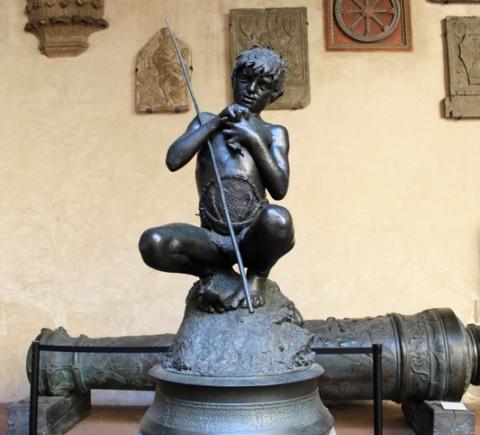 Я расскажу историю одного из самых старых общественных зданий Флоренции, в котором расположен музей Барджелло. Вы узнаете, почему в одни века оно играло роль резиденции главы администрации и городского совета, в другие — было свидетельством пыток и казней. Я проведу вас по знаковым залам музея и покажу самые важные работы зодчих итальянского Возрождения. Вы увидите поразительно красивую и на редкость живую скульптуру мальчика—рыбака неаполитанского мастера Винченцо Джемито, двух «Давидов» Донателло, прекрасный и трепетный бюст Констанции Буонарелли, созданный влюбчивым и вспыльчивым Бернини, и первые конкурсные работы Гиберти и Брунеллески.