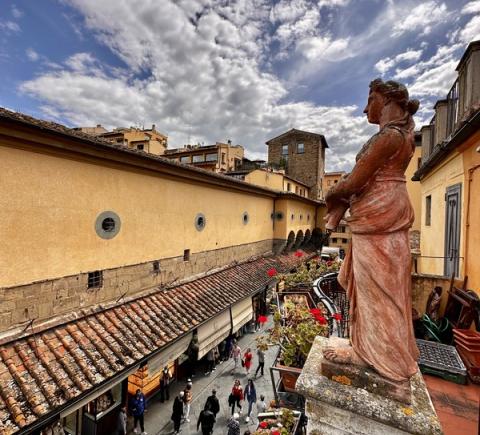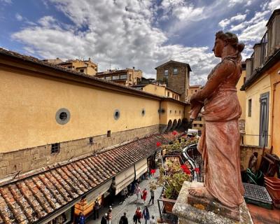 Вы подниметесь на одну из самых уютных террас города. Она возвышается над популярным и многолюдным местом, которое вы увидите с непривычного ракурса. Величественный Дворец Синьории, Коридор Вазари и красные черепичные крыши будут перед вами как на ладони.
